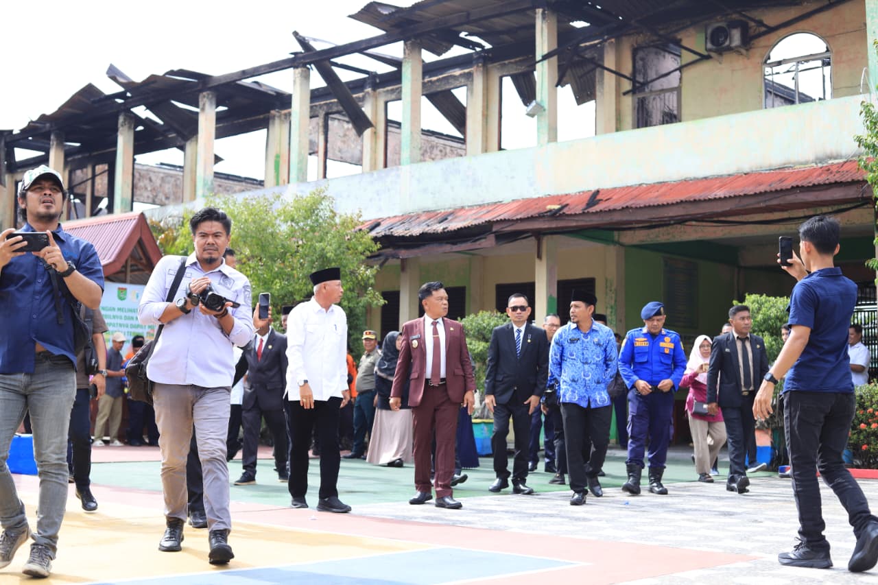 Ditempat itu, dia berdialog dengan Kepala Sekolah dan para guru membahas keberlangsungan proses belajar mengajar pascakebakaran.