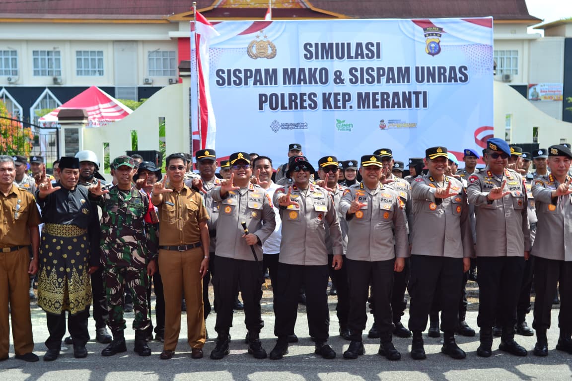 JURNALMADANI - Polres Kepulauan Meranti, Polda Riau, menggelar simulasi gabungan sistem pengamanan markas komando (Sispam Mako) dan sistem pengamanan unjuk rasa di halaman Mapolres Kepulauan Meranti, Senin (27/10/2025).