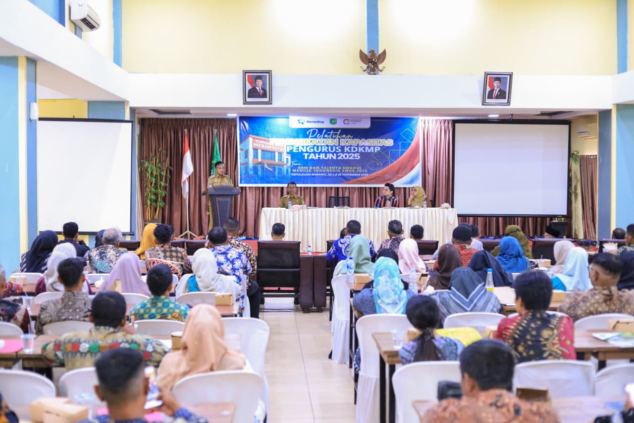 JURNALMADANI — Bupati Kepulauan Meranti AKBP (Purn) H. Asmar membuka Pelatihan Peningkatan Kapasitas Pengurus KDKMP (Koperasi Desa/Kelurahan Merah Putih) Tahun 2025 yang mengusung tema “SDM Talenta Unggul Menuju Indonesia Emas”, Senin (24/11/2025) di Gedung Afifa, Selatpanjang.