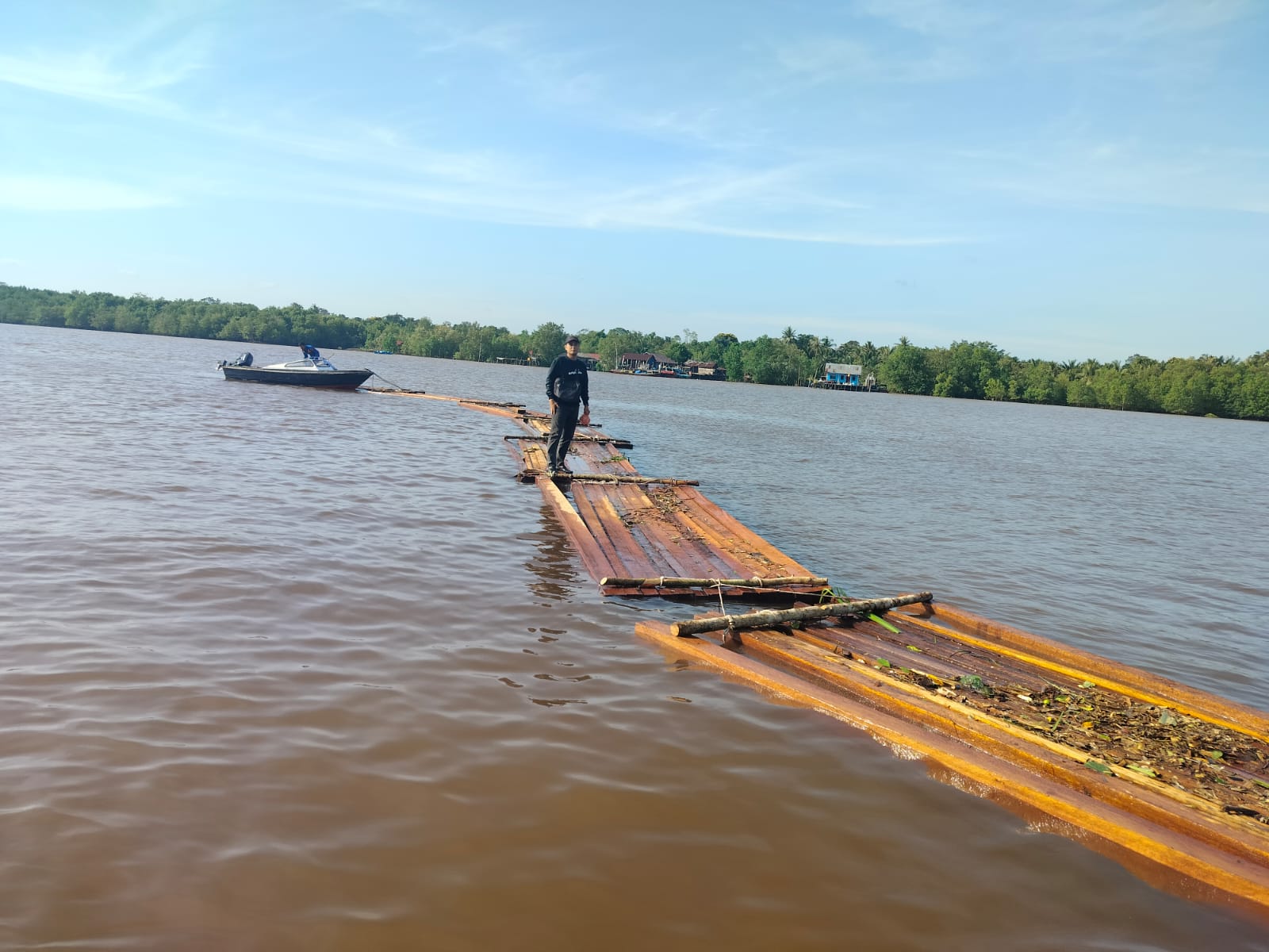 Proses evakuasi kayu olahan menuju dermaga sempat mengalami kendala akibat kondisi medan yang gelap, kawasan yang dikelilingi hutan bakau, serta kuatnya arus laut. Akibatnya, beberapa rakit kayu sempat pecah dan terlepas saat proses penarikan berlangsung.