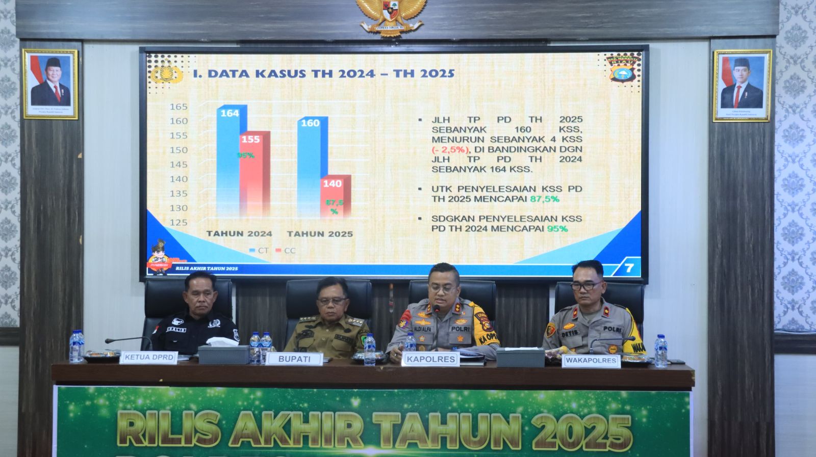 AKBP Aldi mengungkapkan, sepanjang 2025 angka kriminalitas di wilayah hukum Polres Kepulauan Meranti mengalami penurunan sebesar 2,5 persen. Jika pada 2024 tercatat 164 kasus, maka pada 2025 jumlahnya turun menjadi 160 kasus.