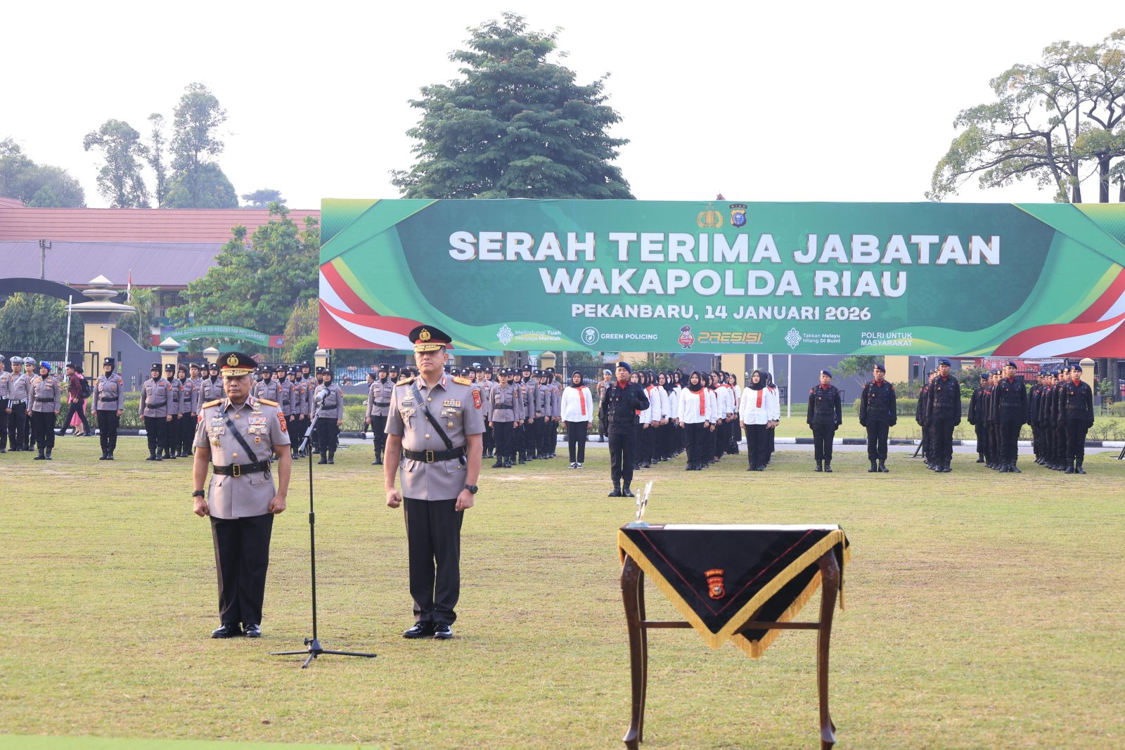 Upacara sertijab Wakapolda ini digelar di halaman Mapolda Riau, dipimpin langsung oleh Kapolda Riau Irjen Pol Herry Heryawan, Rabu (14/1/2026) pagi. Kegiatan ini turut dihadiri para pejabat utama (PJU) Polda Riau.