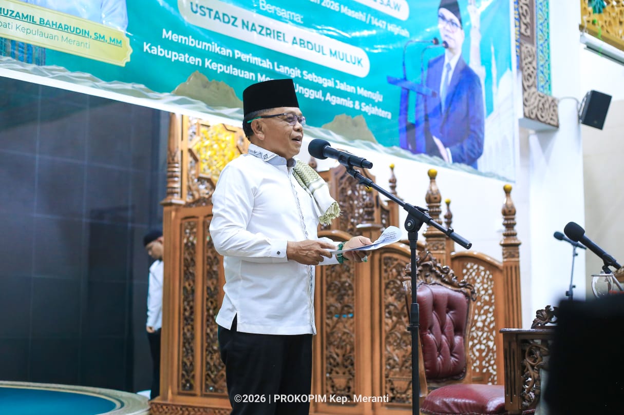 JURNALMADANI – Bupati Kepulauan Meranti, AKBP (Purn) H. Asmar, menegaskan bahwa peringatan Isra Mikraj Nabi Muhammad SAW bukan sekadar seremoni keagamaan, melainkan refleksi mendalam tentang arah kepemimpinan dan pengabdian kepada masyarakat.