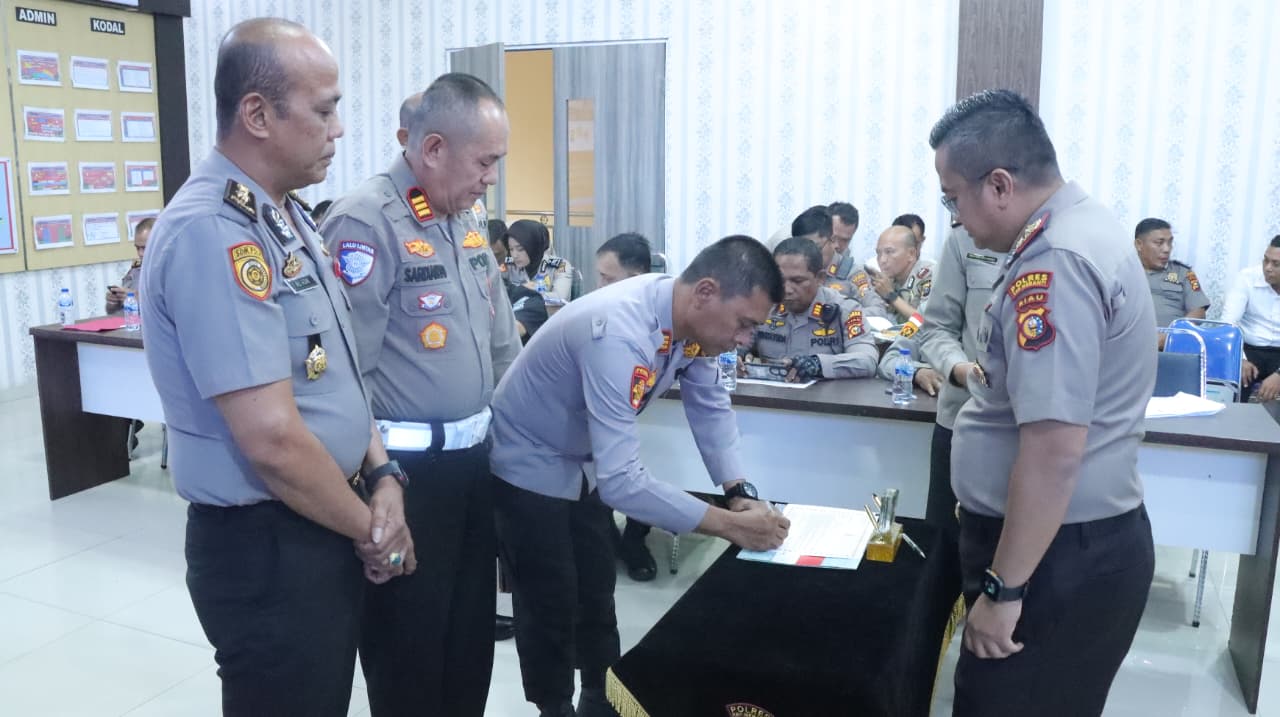Kegiatan tersebut dipimpin langsung oleh Kapolres Kepulauan Meranti, AKBP Aldi Alfa Faroqi, S.H., S.I.K., M.H., dan dihadiri Wakapolres Kompol Detis Mayer Silitonga, S.H., para pejabat utama, para Kapolsek jajaran, perwira, serta seluruh personel Polres Kepulauan Meranti.
