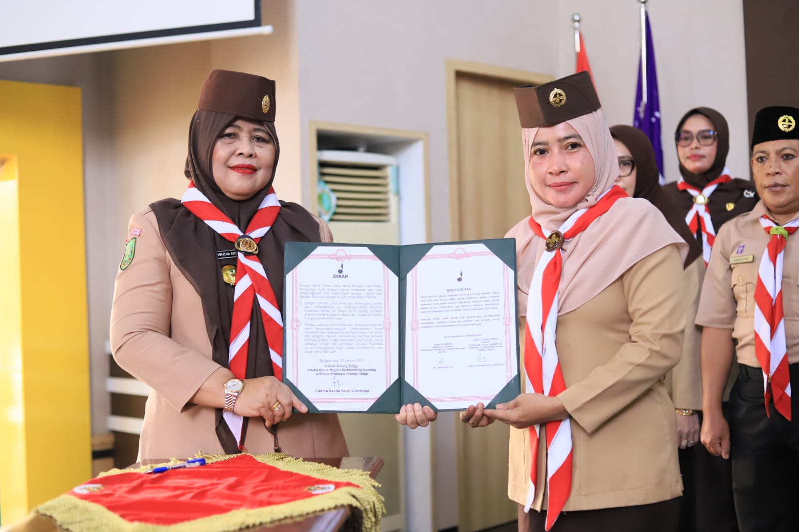 Hj. Ismiatun menyampaikan apresiasi dan terima kasih kepada jajaran pengurus sebelumnya atas dedikasi dan pengabdian yang telah diberikan bagi kemajuan Gerakan Pramuka di Tebingtinggi.