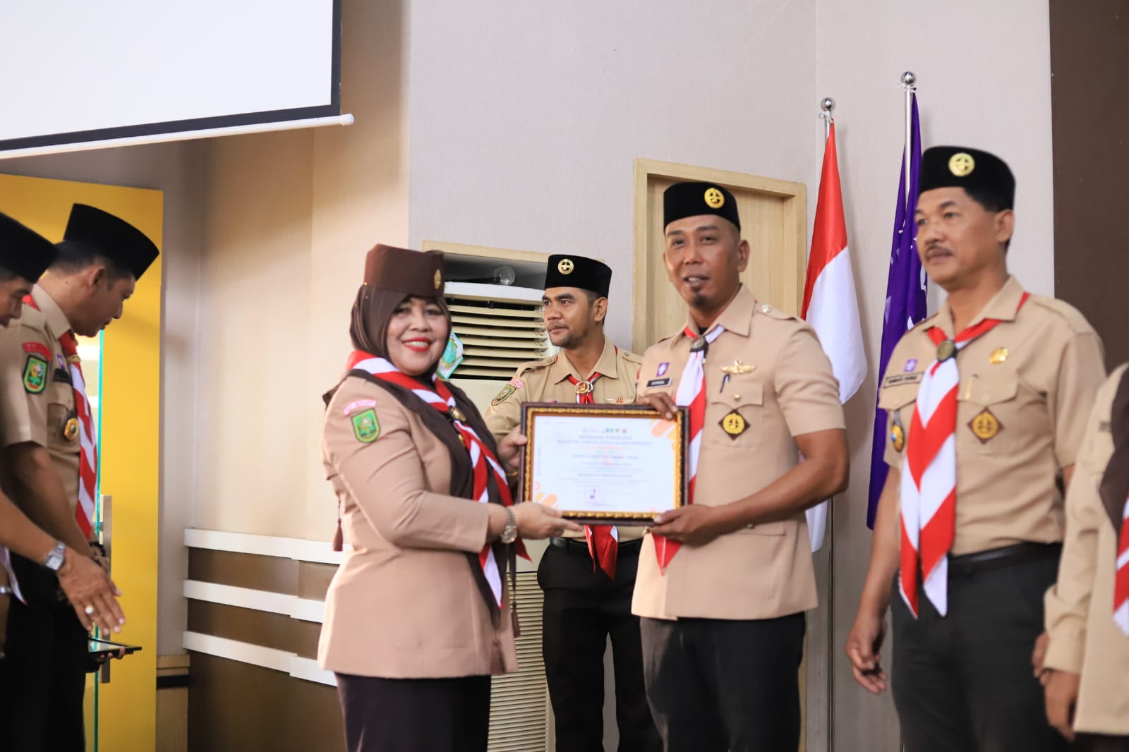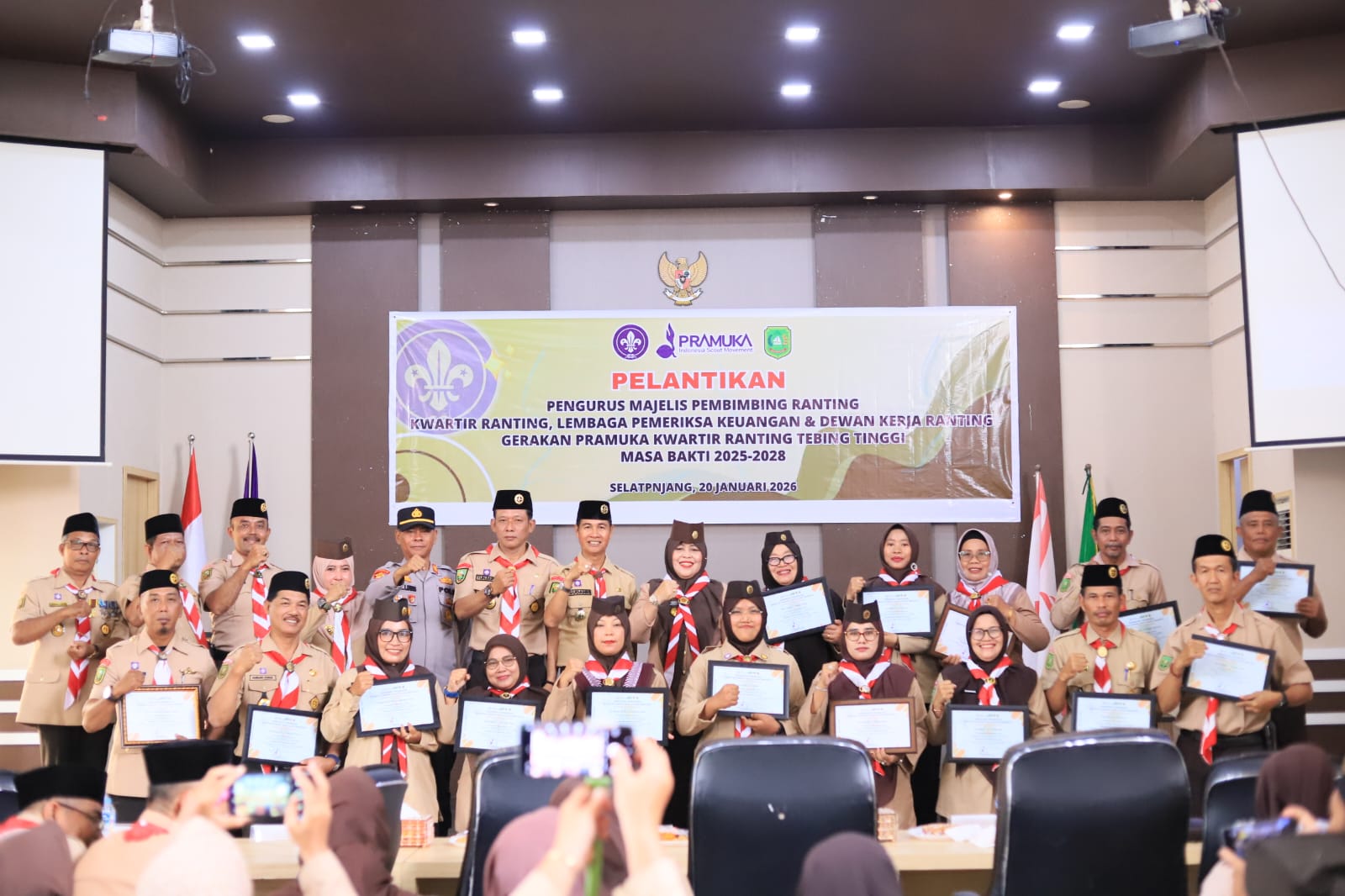 JURNALMADANI - Ketua Kwartir Cabang (Kwarcab) Gerakan Pramuka Kepulauan Meranti, Hj. Ismiatun, melantik Majelis Pembimbing Ranting (Mabiran), Pengurus Kwartir Ranting (Kwarran), serta Lembaga Pemeriksa Keuangan (LPK) Kwartir Ranting Gerakan Pramuka Tebingtinggi Masa Bakti 2025–2028.