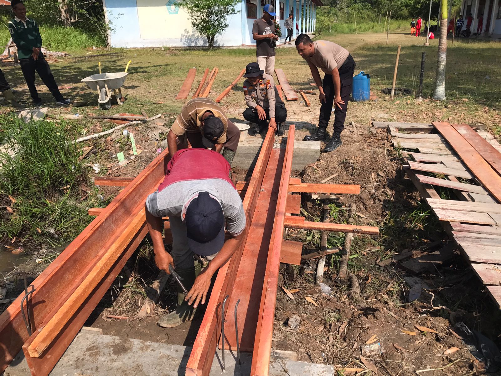 Pembangunan jembatan Merah Putih Presisi di MTs Al-Anshor, Desa Kuala Merbau, Kecamatan Pulau Merbau, memasuki hari ketiga dengan melibatkan personel Polsek Tebing Tinggi Barat bersama masyarakat setempat.