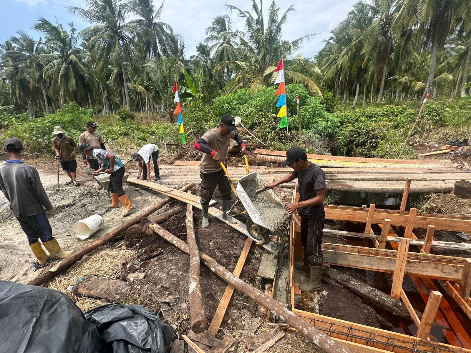 Di wilayah Polsek Rangsang, pembangunan jembatan Merah Putih Presisi dilaksanakan di Jalan Poros Dusun III, Desa Tanjung Gemuk.