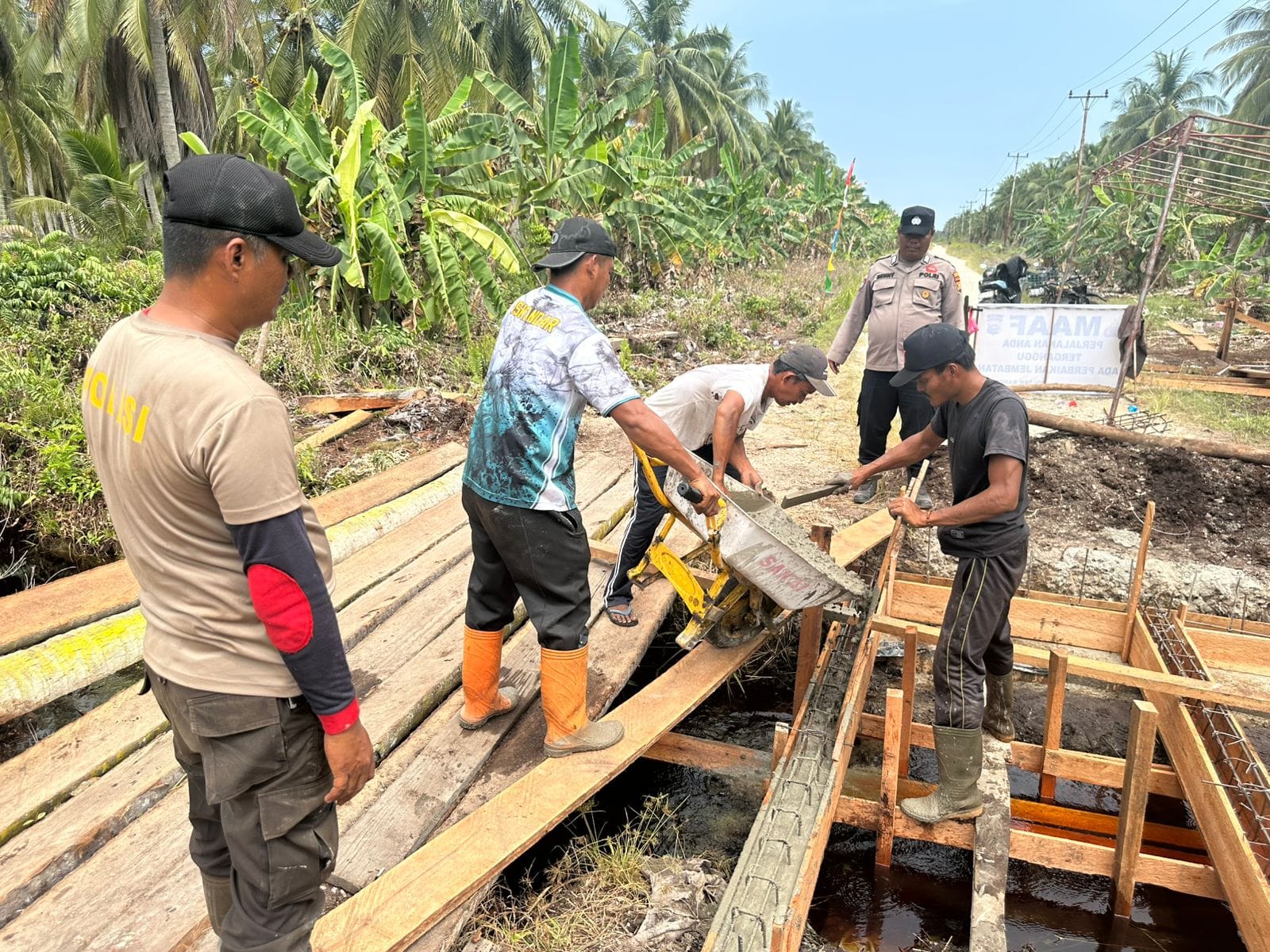 Kapolsek Rangsang AKP Gunawan, S.H., bersama Kepala Desa dan masyarakat setempat, secara langsung terlibat dalam proses pembangunan.