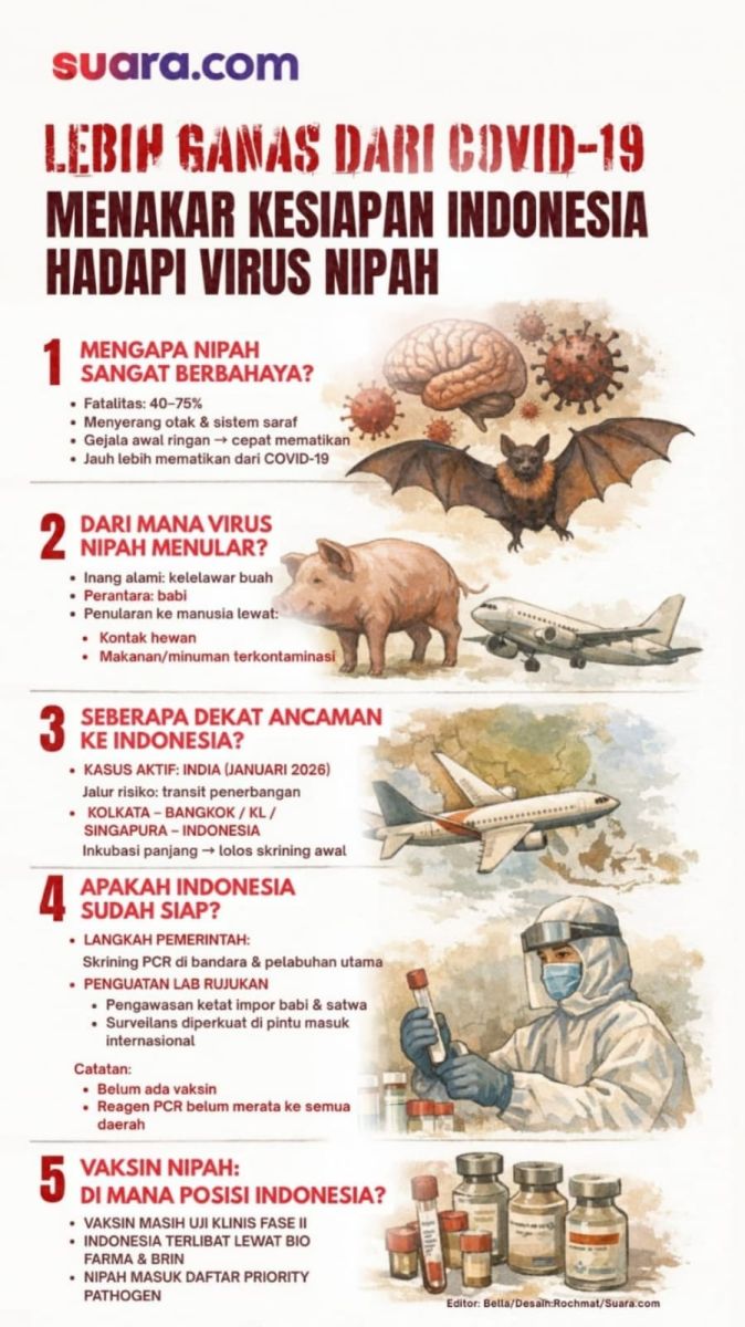 Jika Nipah masuk, ujian utamanya bukan pada vaksinasi massal di awal, melainkan pada kecepatan isolasi kasus pertama, pengawasan ketat terhadap populasi hewan, dan perlindungan absolut terhadap tenaga kesehatan. Kesalahan kecil dalam deteksi dini bisa berujung pada angka kematian yang sangat traumatis bagi masyarakat.
