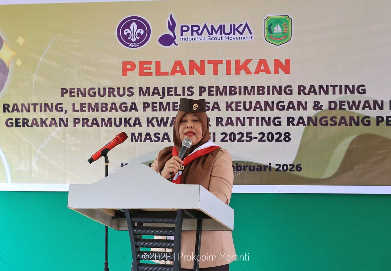 Harapan itu disampaikan Ketua Kwartir Cabang (Kwarcab) Gerakan Pramuka Kepulauan Meranti, Hj. Ismiatun, saat melantik jajaran pengurus di Halaman SDN 08 Desa Kayu Ara, Jumat (6/2/2026) siang.