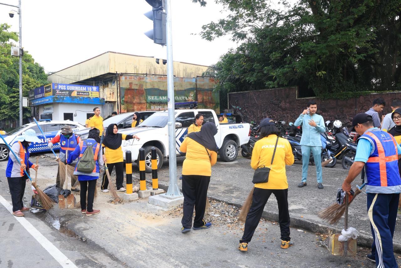 Kegiatan tersebut dilaksanakan secara serentak di seluruh wilayah Riau sebagai bentuk sinergi antara TNI, Polri, pemerintah daerah, serta elemen masyarakat dalam meningkatkan kebersihan lingkungan dan pelayanan publik.
