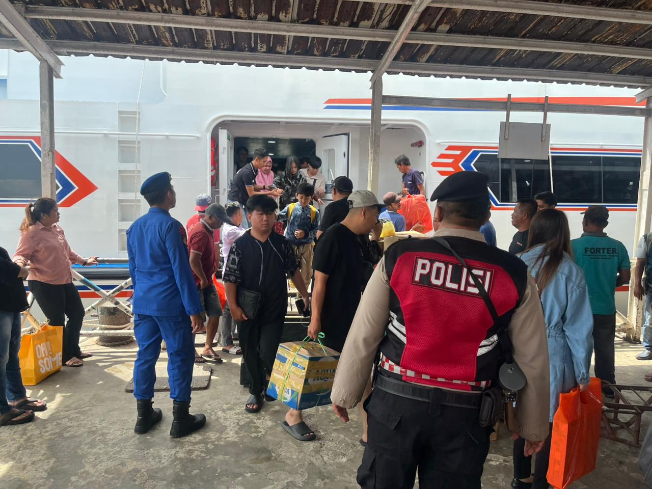 Mereka ditempatkan di sejumlah titik strategis guna mengatur arus penumpang, memantau aktivitas bongkar muat, serta mengantisipasi potensi gangguan keamanan.