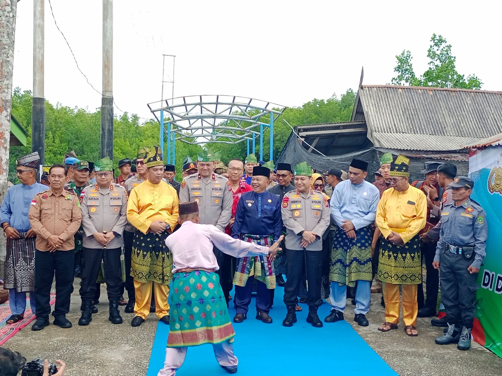Kegiatan Silaturahim Pemangku Adat, Susur Sungai Jelajah Kampung ini, bertambah meriah dan semarak dengan dihadiri oleh Kapolda Riau, Irjen Pol Dr. Herry Heryawan, S.IK., M.H., M.Hum., Wakapolda Riau Brigjen Pol Dr. Hengki Haryadi, S.IK., M.H., Irwasda Polda Riau Kombes Pol Prabowo Santoso, S.IK., M.H., dan sejumlah Pejabat Utama Polda Riau. Turut hadir bersama, Bupati Kepulauan Meranti AKBP (Purn) H. Asmar dan Kapolres Kepulauan Meranti AKBP Aldi Alfa Faroqi, S.H., S.IK., M.H., Ketua DPRD H. Khalid Ali, S.E., Pimpinan Forkompimda, Pimpinan Organisasi Perangkat Daerah, serta pimpinan instansi vertikal. Terlihat juga tokoh adat, tokoh masyarakat, tokoh wanita, dan utusan pelajar.