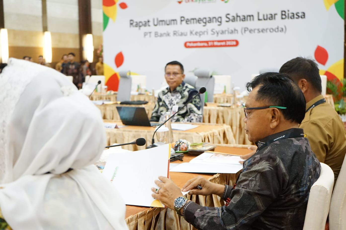 JURNALMADANI – Bupati Kepulauan Meranti, AKBP (Purn) H. Asmar, menghadiri Rapat Umum Pemegang Saham (RUPS) Bank Riau Kepri (BRK) Syariah yang digelar di Ballroom Gedung BRK Syariah, Jalan Jenderal Sudirman, Pekanbaru, Selasa (31/3/2026).
