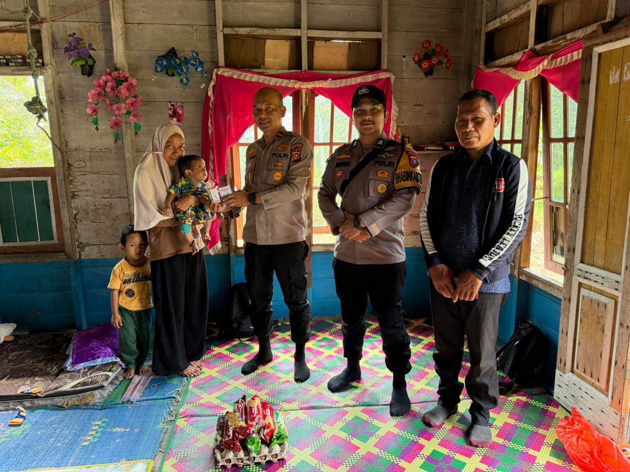 Kapolsek juga menjelaskan bahwa kondisi anak penerima bantuan menunjukkan tanda-tanda stunting, sehingga diperlukan perhatian dan penanganan berkelanjutan dari berbagai pihak, termasuk pemerintah dan tenaga kesehatan.