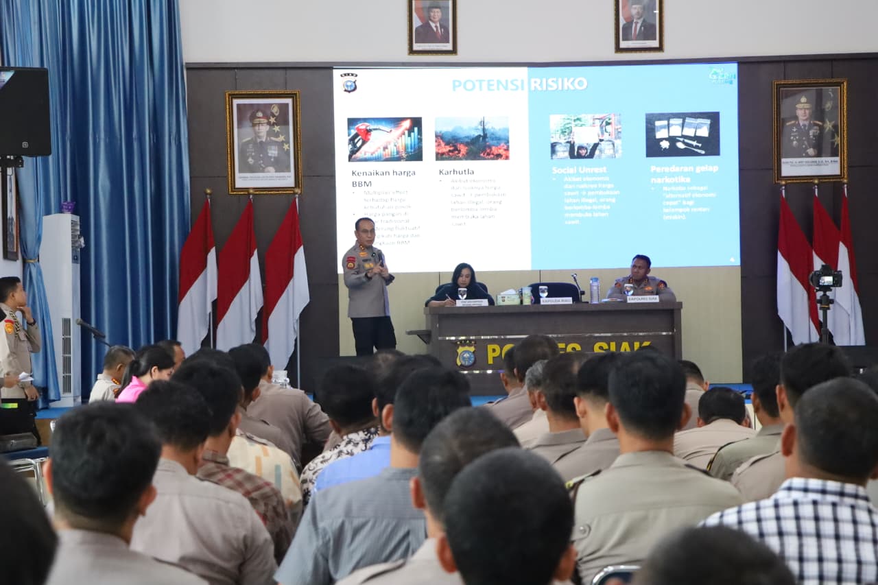 Arahan tersebut disampaikan Kapolda saat memberikan paparan bertajuk “Sense of Crisis dan Strategi Pemolisian Adaptif dalam Menghadapi Ketidakpastian Ekonomi dan Dinamika Kamtibmas” di Kabupaten Siak, Senin (21/4/2026), yang turut dihadiri Staf Ahli Kapolri Bidang Sosial Media Rustika Herlambang.